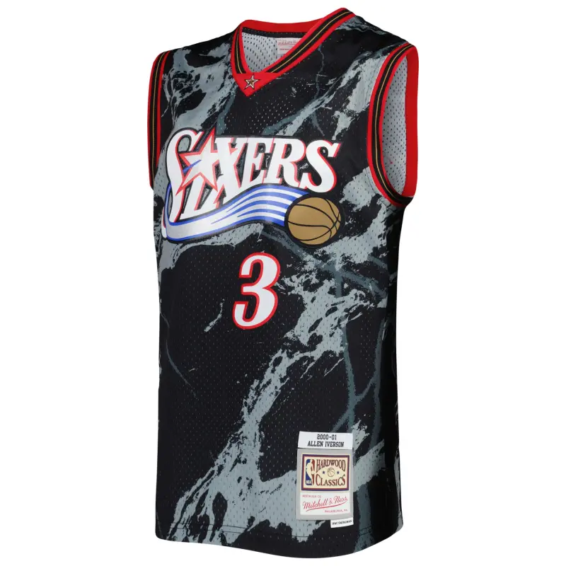 Men’s Philadelphia 76ers Allen Iverson Mitchell & Ness Black 2000/01 Hardwood Classics Marble Swingman Jersey