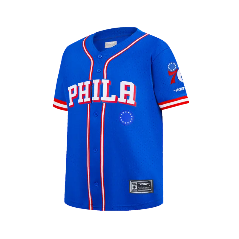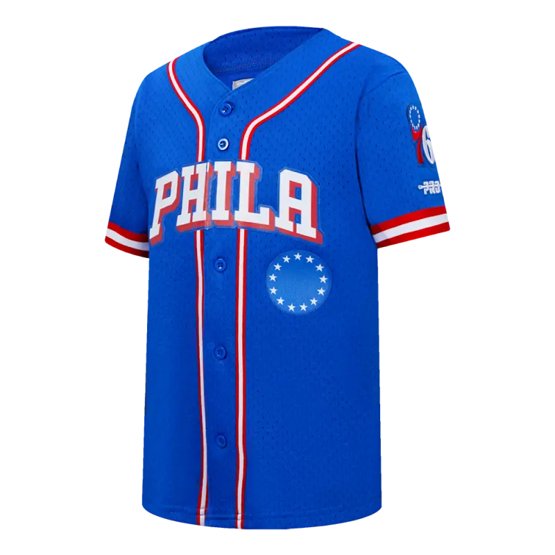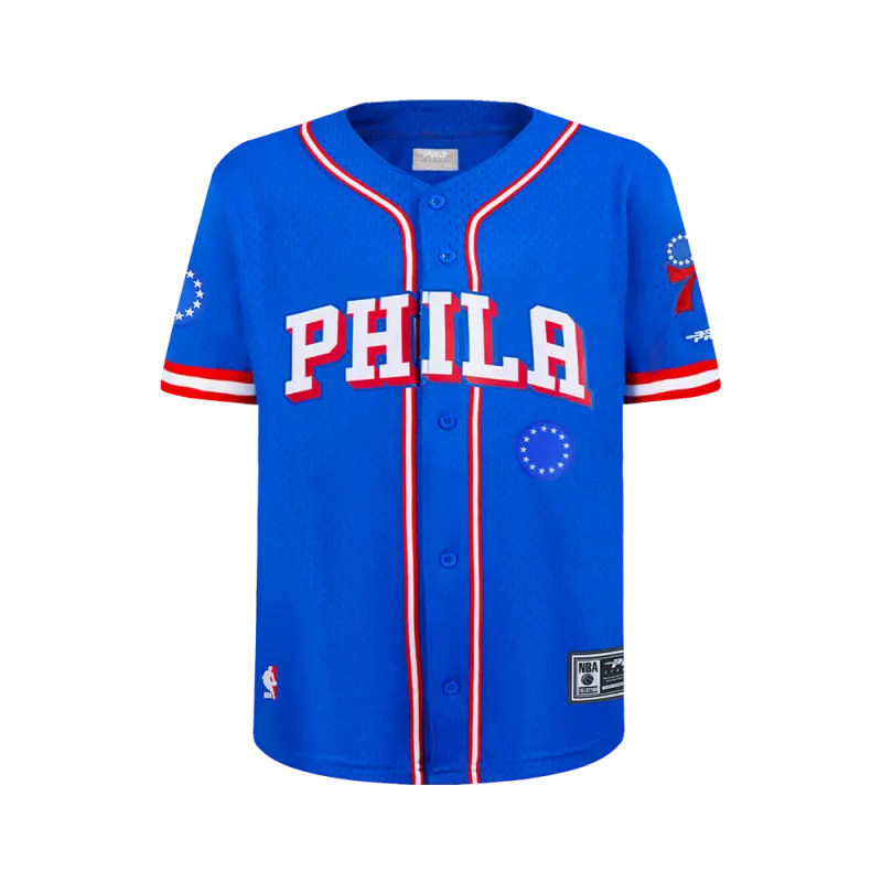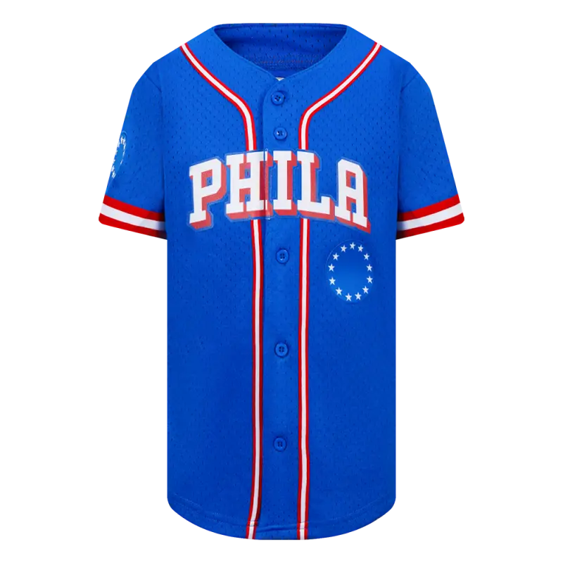 NBA PHILADELPHIA 76ERS CLASSIC BIG BOYS MESH BUTTON DOWN SHIRT (ROYAL BLUE\/RED)