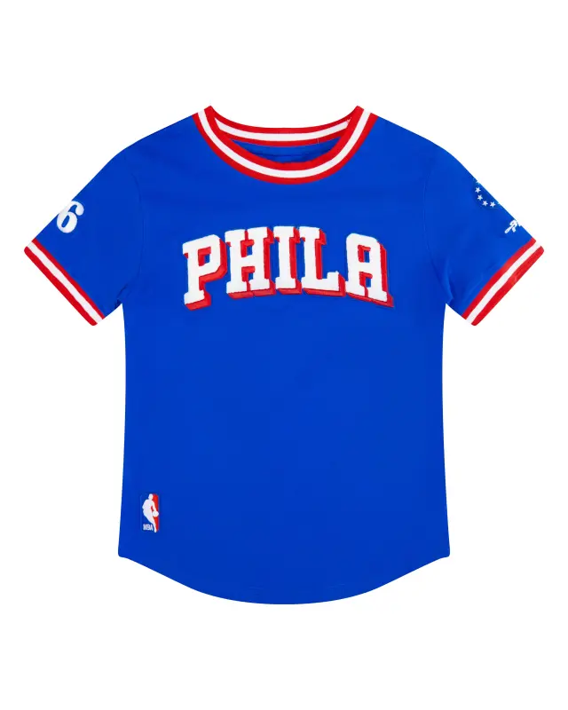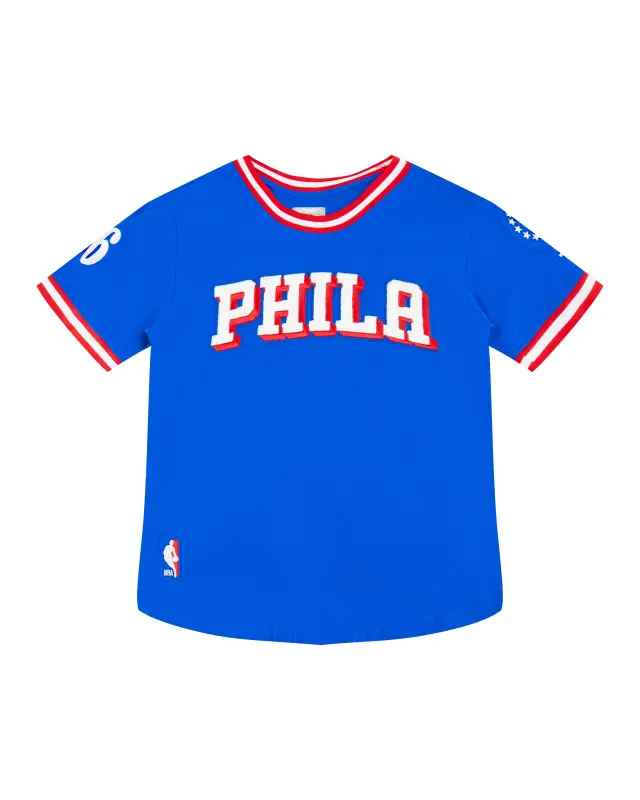 NBA PHILADELPHIA 76ERS CLASSIC BIG GIRLS SHORT SLEEVE BOXY TEE (ROYAL BLUE)