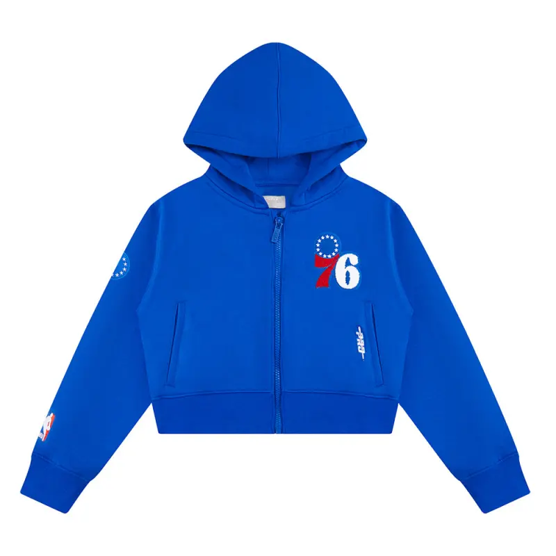 NBA PHILADELPHIA 76ERS CLASSIC BIG GIRLS FLEECE FULL ZIP HOODIE (ROYAL BLUE)