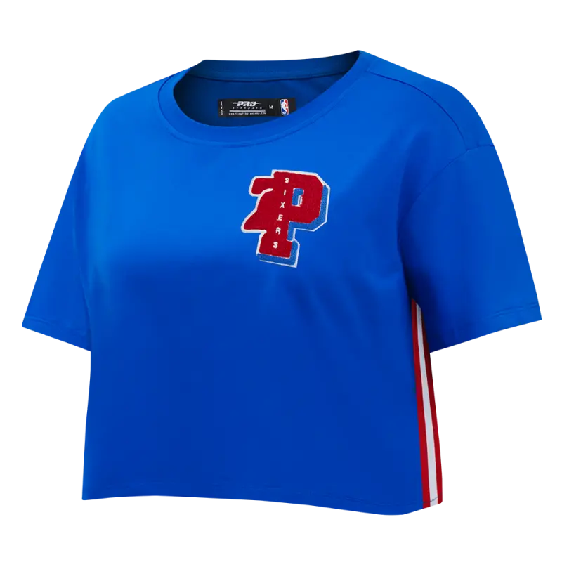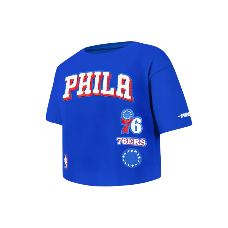 NBA PHILADELPHIA 76ERS MASHUP WOMEN’S BOXY TEE (ROYAL BLUE)