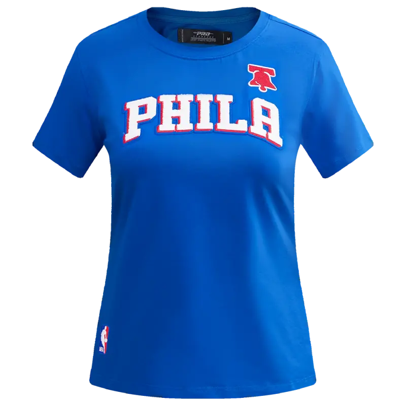NBA PHILADELPHIA 76ERS CLASSIC SHORT SLEEVE WOMEN’S SINGLE JERSEY SLIM FIT TEE (ROYAL BLUE)
