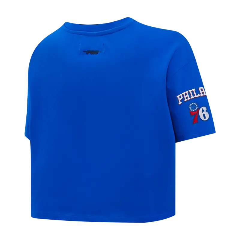 NBA PHILADELPHIA 76ERS MASHUP WOMEN’S BOXY TEE (ROYAL BLUE)