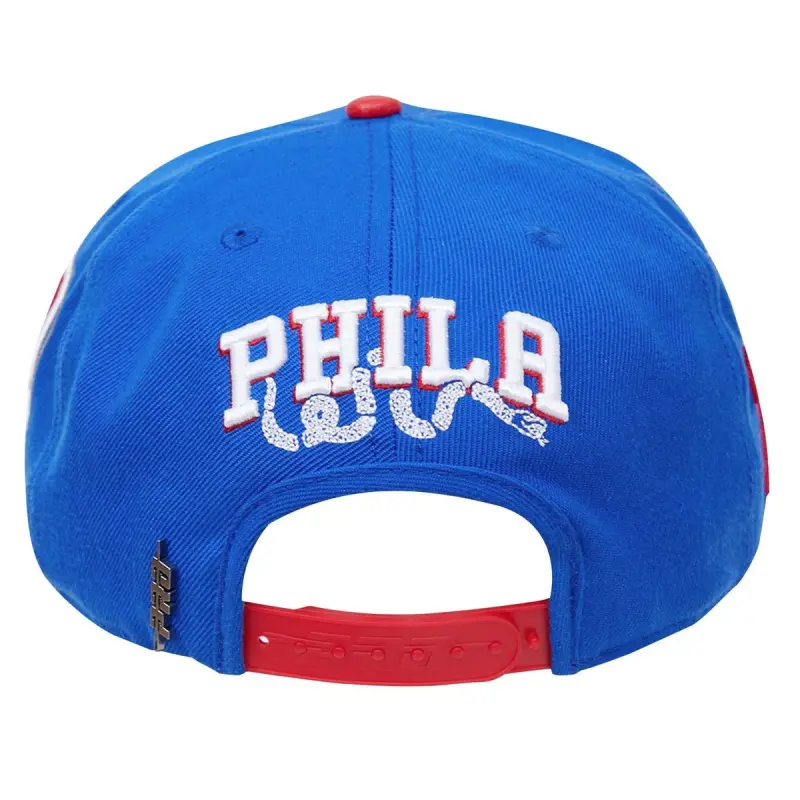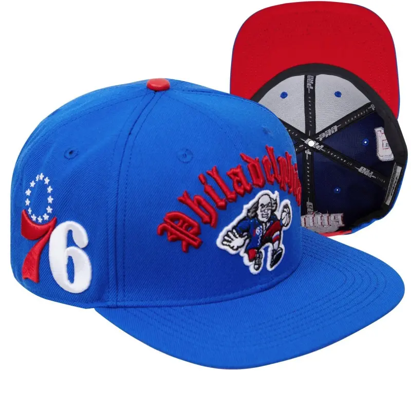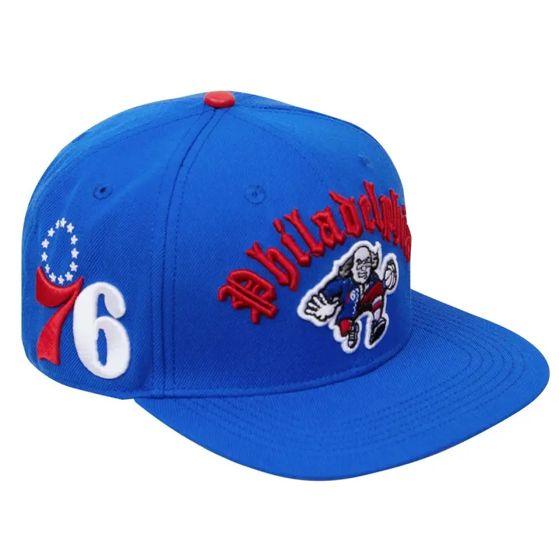 The Pro Standard Premium NBA Philadelphia 76Ers Old English Unisex Snapback Hat (Royal Blue)