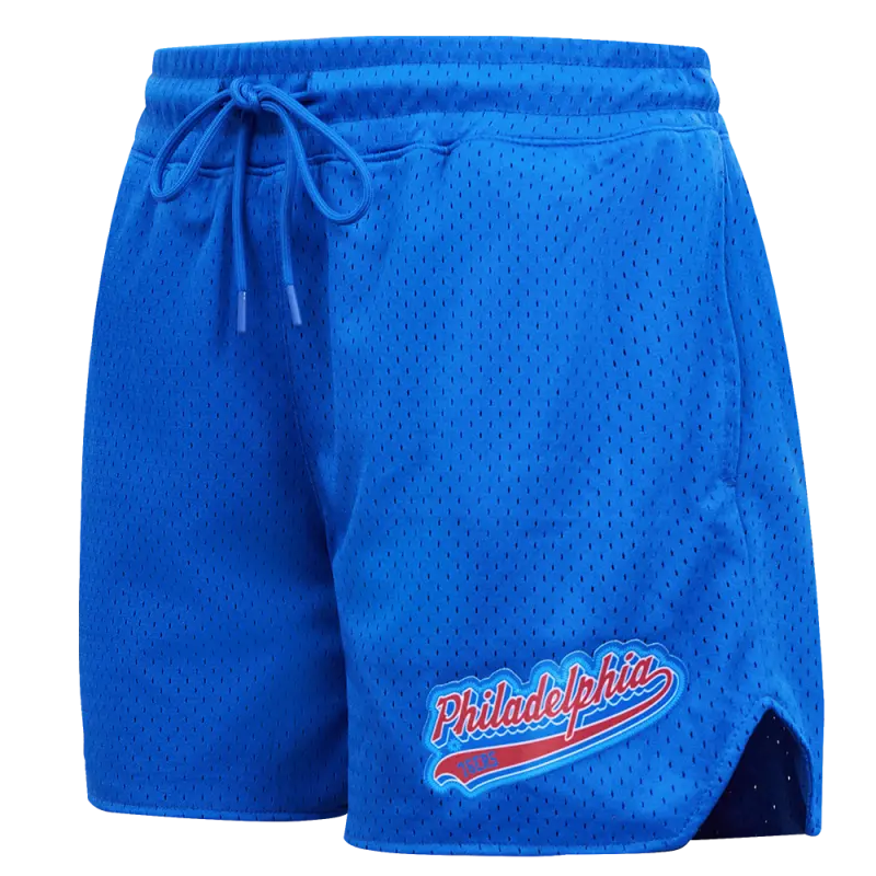 NBA PHILADELPHIA 76ers SCRIPT TAIL WOMEN’S MESH SHORT (ROYAL BLUE)